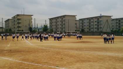 6月2日(火)1、2時間目に体育大会の3年学年練習を行いました。1時間目は、体育館で種目の確認と種目練習、2時間目は、学年競技の大縄跳びの練習を行いました。受け身ではなく、一人一人が意識を高めて、積極的に取り組んで協力することの大切さの話があり、その結果、大縄跳びでもなかなかうまく跳べなかったクラスが一気に跳べるようになったり、また、他のクラスも記録が伸びてくるなど本番が楽しみです。 さらにクラスが、学年が一致団結してほしいものです。