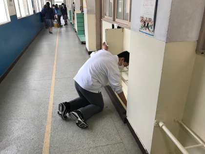 みんなが帰った後、選抜メンバーで教室の床の油引きをしてもらいました。