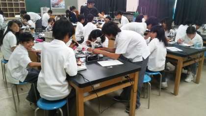 6月3日(水)1年生理科の授業は、理科室で水中の生物の観察を行いました。事前に使い方を学習しているので、光学顕微鏡もスムーズに使えました。ミジンコとアメーバを観察し、しっかりとスケッチに描きとめました。