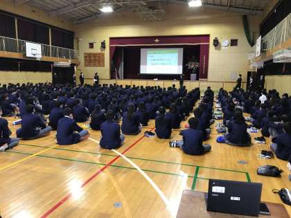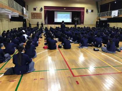 井高野中学校の生活の決まりについて生徒指導主事の先生がわかりやすく説明しました。