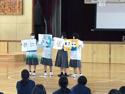 自分たちの作品とオリジナルデザインのTシャツ 文化祭2,021 を見せてくれました。