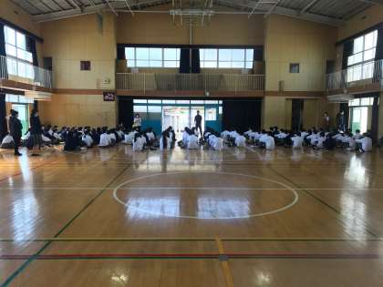 2年生が体育館に集まっています。