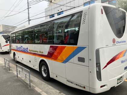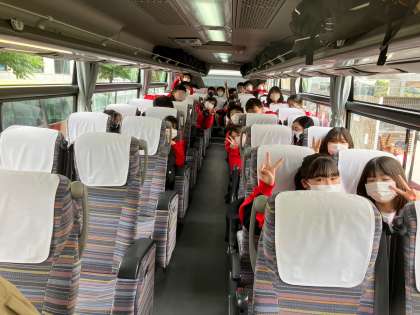ゴルフセンター前に配車されたバスに乗り込みました。