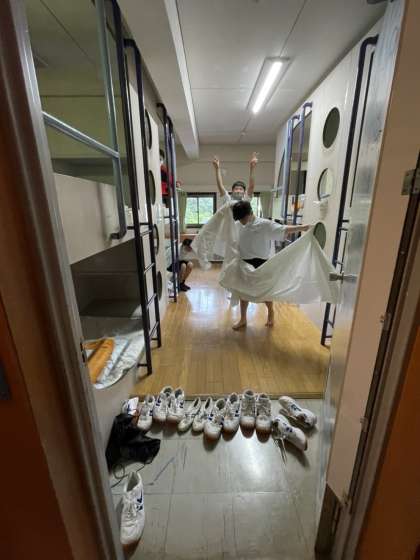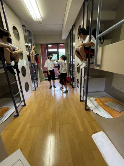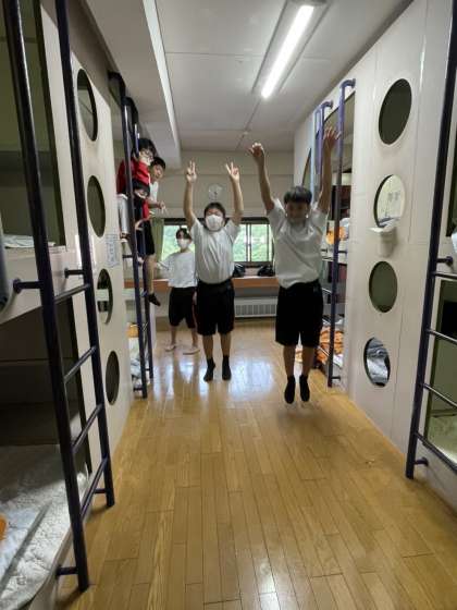 友達と同じ部屋で過ごせるうれしさがあふれています。