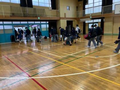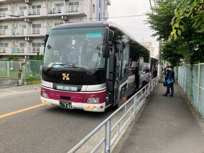 体育館を出てバスに乗りました。