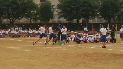 50m走が終わりました。さすがに3年生は速いですね。次は全学年の100年m走です。