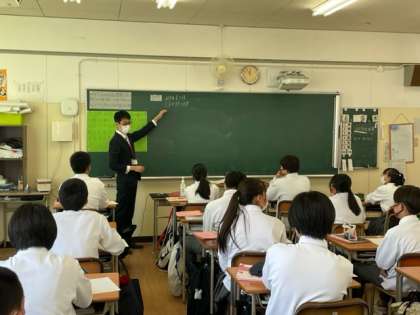 教育実習生の小林先生の授業を真剣な眼差しで受けています。