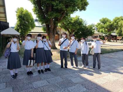 ?8/7(日)に谷町九丁目にある生國魂神社で裏千家の学生茶会があり、茶道部もお客として参加してきました。
