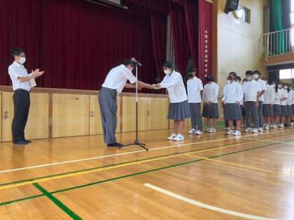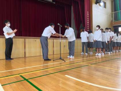 時間の関係上、今日は2つの部の賞状を伝達しました。