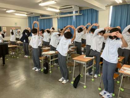 ストレッチをして体をほぐし、手拍子でリズム感を養い、歌に臨みました。