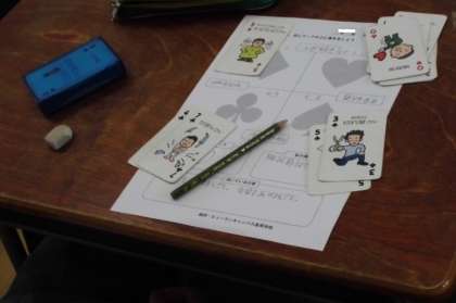 7月7日(水)2年生で、9月に行われる職場体験の事前学習として出前授業を実施しました。ヒューマンキャンパスアカデミーより2名の講師に来ていただき、1限目から5限目まで1クラスずつ授業をしていただきました。生徒たちは、「SPトランプ」を使用し自分の性格や興味・関心に照らし合わせた仕事選びの学習をしました。5時間連続で授業をしていただいた講師の先生、本当にありがとうございました。