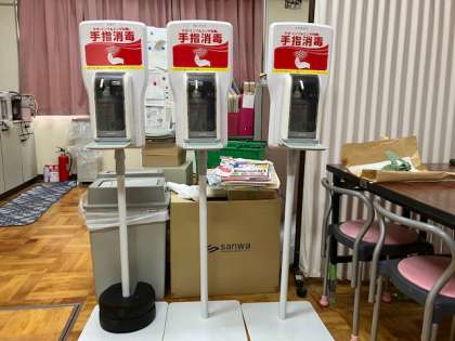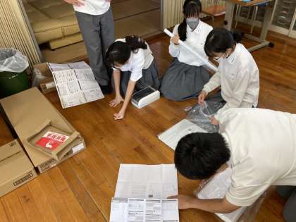 今日の全校集会で衛生委員長から報告のあった手指消毒器を組み立てている写真をゲットしました。