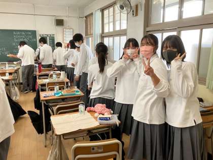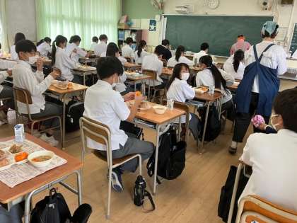 今日のメニューは「揚げ餃子・豚肉と冬瓜(とうがん)の中華煮・冷凍蜜柑(みかん)・黒糖パン・牛乳」の5品です。