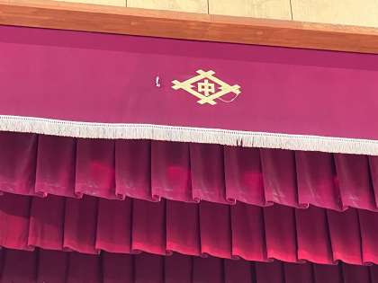 ・50周年を記念して舞台袖や舞台上の校章入りの幕を新調していただきました。