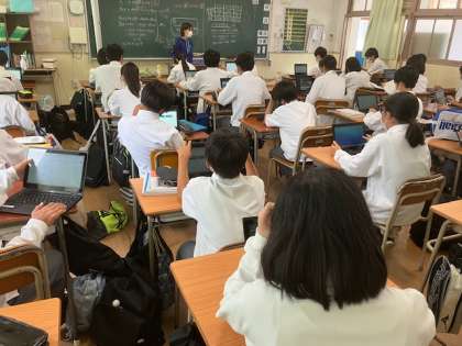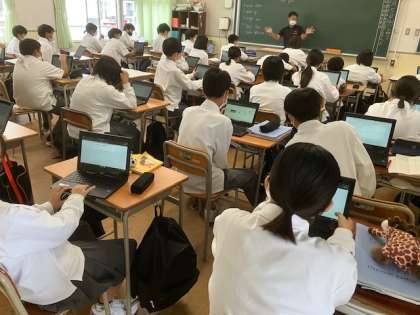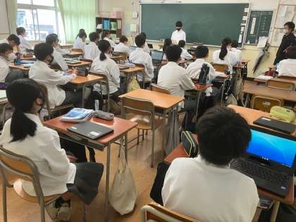 各クラスの選挙管理委員の説明と諸注意の後、一人一台端末で投票します。