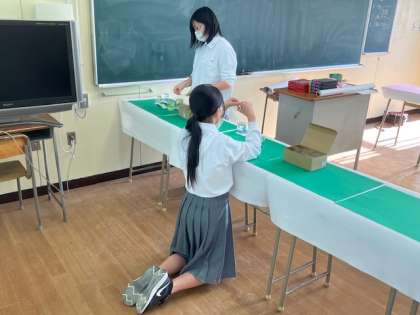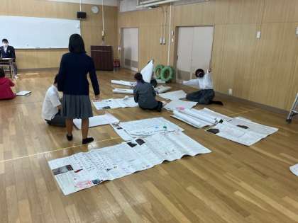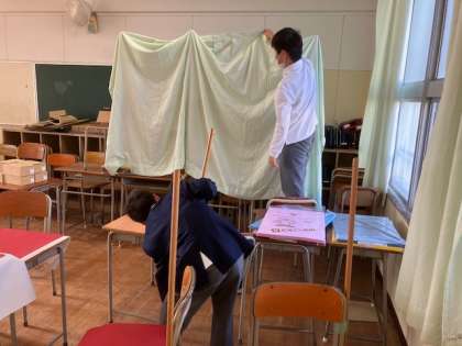 2年のキャンドル展示と壁新聞展示会場の準備風景です。