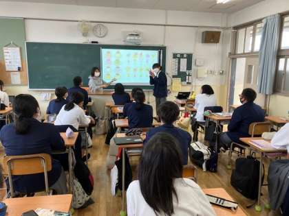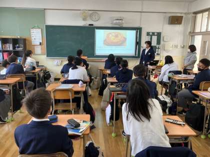 食べ物の酸化について調べたことをPC画面を使って発表しています。