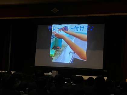 「手を洗いましょう」の歌で手洗いして、感染症予防に努めましょう。