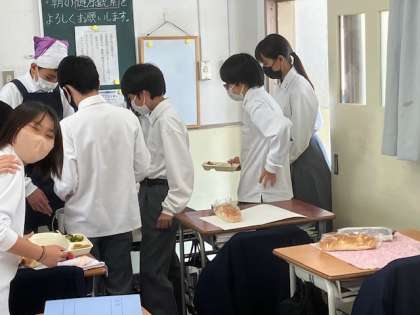 今日のメニューは「白身魚のフリッター・ミネストローネ・ブロッコリーのサラダ・おさつパン・牛乳」の5品です。