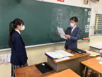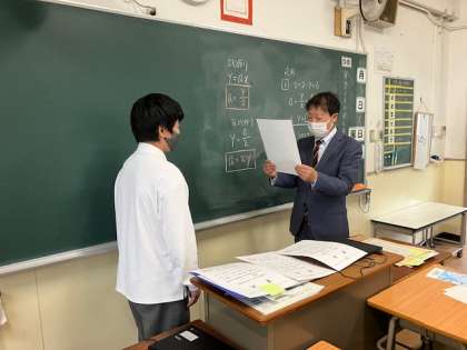 1年2組で総合文化祭での美術部の発表についての賞状を伝達しました。