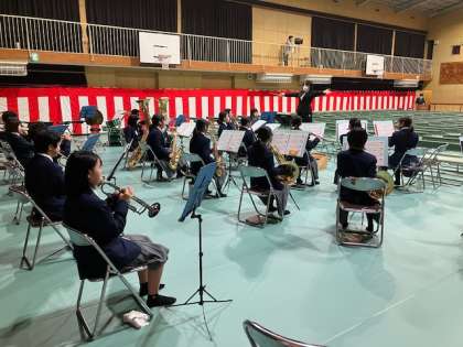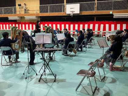 3回のファンファーレ、校歌の伴奏と大活躍の吹奏楽部の皆さんです。