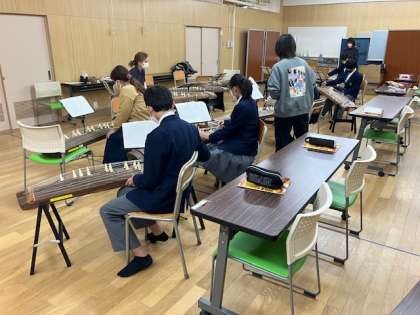 昨日16日から講師の先生に来ていただいて和楽器 筝 の体験授業をしていただいています。