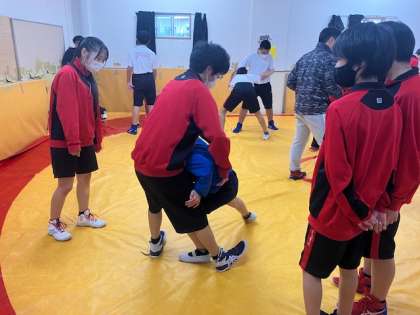 スパーリングです。タックルで倒すことに成功しました。ポイントです。