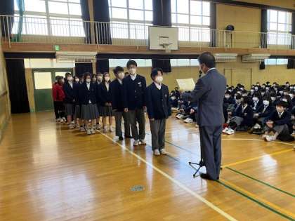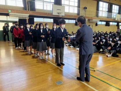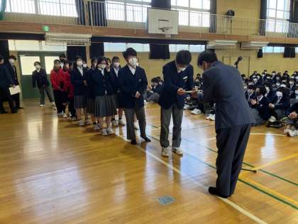 茶道部の3年生が3年間、裏千家茶道を学んだ、ということで奨励証をいただきましたので、伝達しました。Tさん、Nさん、Iさん、Kさん、おめでとうございます!
