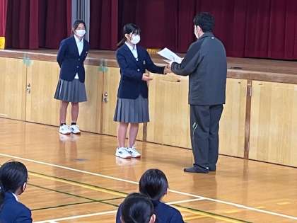 学年の先生からいいところいっぱい見せてくれた方に表彰状を授与しました。