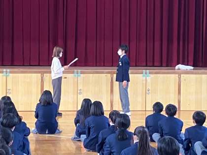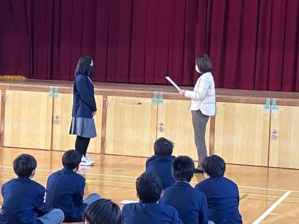 1年生、いろんな場面で頑張っていたので、全員表彰したいのですが、今回はご容赦ください。3学期、今度はあなたのいいとこ見つけます。