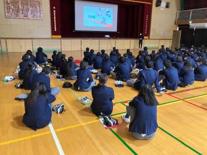 2年生は3時間目に学年集会で冬休みの事前指導を行いました。