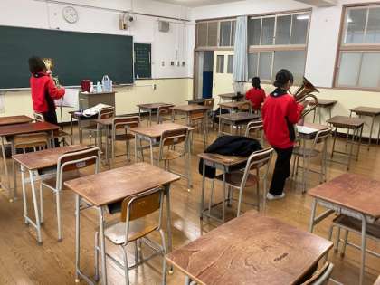 4階フロアの音楽室・教室で吹奏楽部が分かれて練習しています。