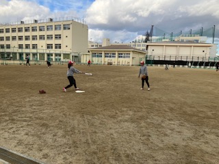 運動場では女子ソフトボール部と野球部が、体育館ではバスケットボール部が活動していました。