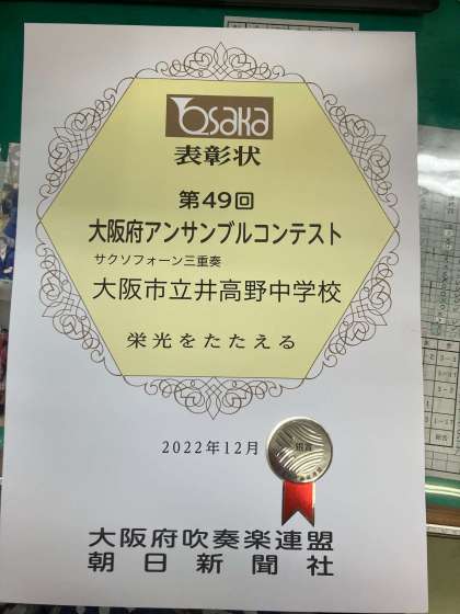 第49回 大阪府アンサンブルコンテスト サクソフォーン三重奏 銀賞