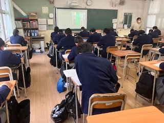 写真左)3年2組の国語、魯迅の「故郷」です。