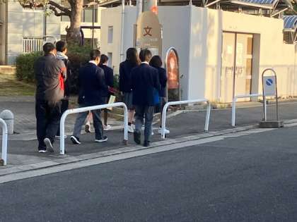 「グッとモーニングキャンペーン」遠征組の皆さんが井高野小学校・東井高野小学校・井高野駅前に向かって出発しました。