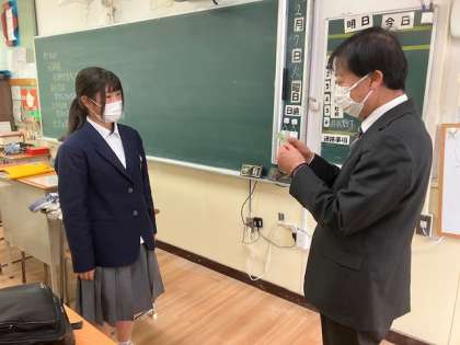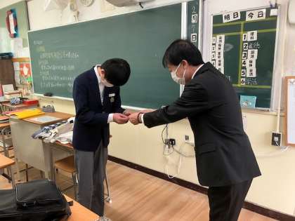 今日は2年3組の衛生委員さんに修了証をお渡ししに行きました。