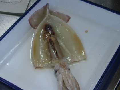 8月3日(月)、科学部は、イカとアジと解剖をしました。2,3年生は昨年もイカの解剖を行ったので、イカの体のつくりやハサミの使い方など慣れたところもありましたが、1年生は少し恐る恐る扱っていました。また、今年は、アジの解剖も行い、脊椎動物と軟体動物のちがいも実際に見ることができました。使った教材は、その後調理して、おいしくいただきました。