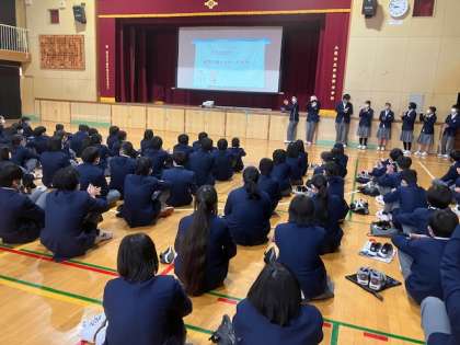 50期生の皆さん、力を合わせて給食の準備を速めて食品ロスを減らしましょう。