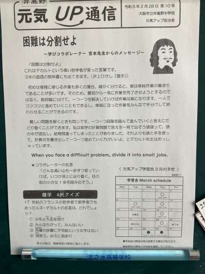 お問い合わせは 「井高野中学校 元気アップ地域本部」