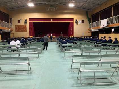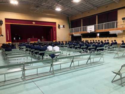 明日が公立高校一般選抜の入試の日ですので、1日前倒ししての3年学年集会、最終回です。
