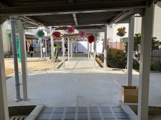 写真下)1年生 presents の祝ご卒業特製花飾りです。