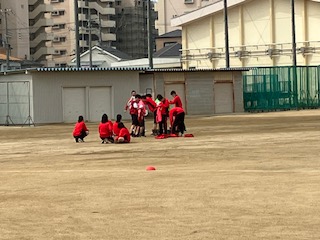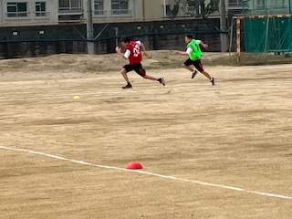 アンカー、ビブス重ね着してモコモコですが、ダッシュしています。