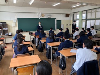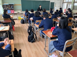 写真下)しっかり者がそろっている4組女子の学代がみんな言御礼を言っています。