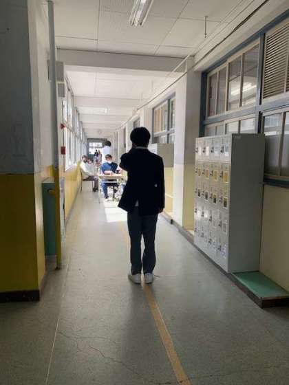 > ?本日は、2年生、3年生は、視力検査と二測定をしております。
