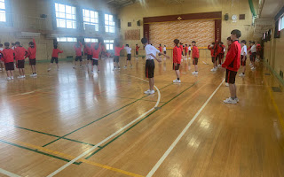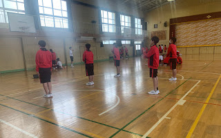 本日の、2年男子の体育の授業は、集団行動とラジオ体操のテストの練習でした。