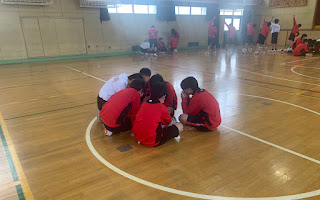 みんなでタブレットを見ながら、動きを確認して、100点目指して練習しておりました。