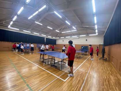 武道場からは卓球部の元気な声が聞こえてきました。こちらでも部活指導員さんが丁寧に指導してくださっています。