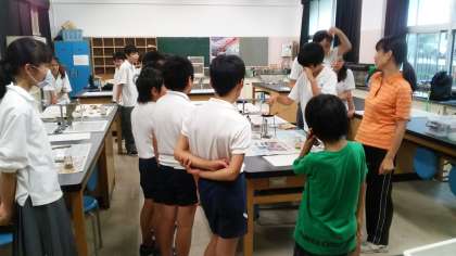 科学部は、部活動体験者6人を迎えて、カルメ焼きを行いました。科学部の代表がガスバーナーの使い方やカルメ焼きの手順を説明し、そのあと、ひとり一人カルメ焼きを体験してもらいました。科学部の上級生でもカルメ焼きがふくらまないことが多いのですが、6人中2人がふくらんで成功しました。ふくらまなかった人も、できたものを持って帰りたいと喜んでくれました。科学部の部員も横で教えながら一緒に作り、楽しい活動ができました。