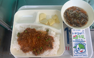 タコライスの良い香りが食欲をそそります。もずくスープも具だくさんです。